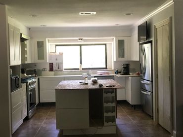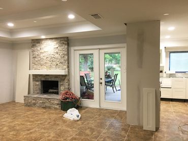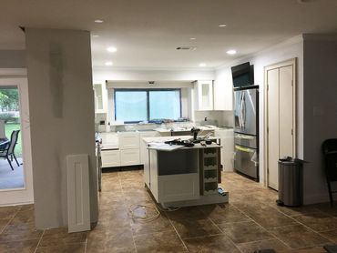 Puebla Construction completed a full renovation of a 2,500 square foot home in Central that flodded in 2016. Sheetrock installation, paint, flooring, bathroom and kitchen remodeling and a new open floor concept.
